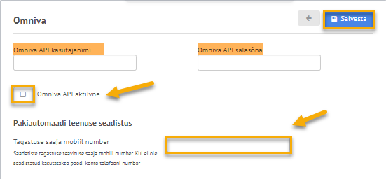 - Määra Omniva aktiivseks ja tee seadistuse ette vastav linnuke