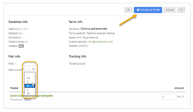 - Klikka Kinnita & Prindi! Klikates Kinnita & Prindi saadetakse tellimus automaatselt Omnivasse