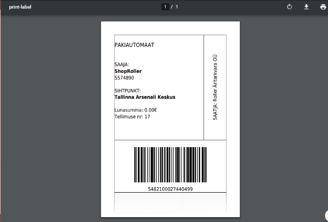 - Uues aknas avaneb pakikaart printimiseks.