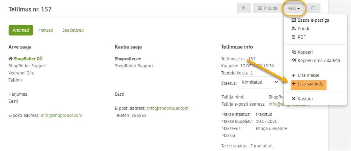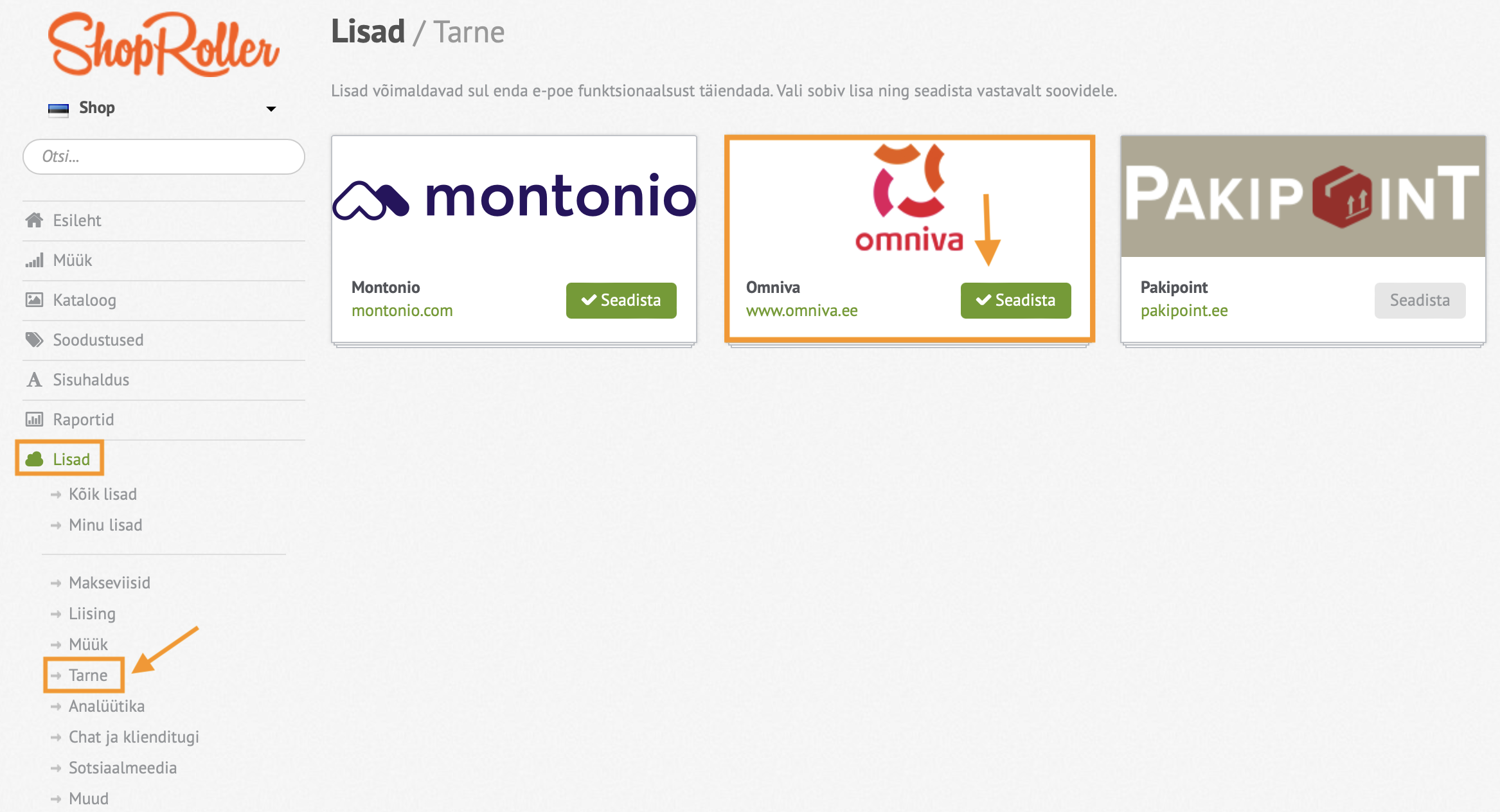 - Ava halduris Lisad ja vali selle alt Tarne