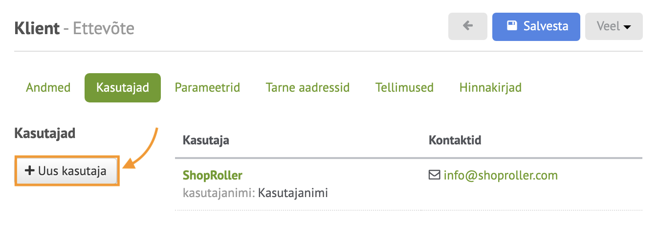 - Kui määrata kasutajarolliks Kliendid, on uue konto omanik (kasutaja) tavaline e-poe klient.