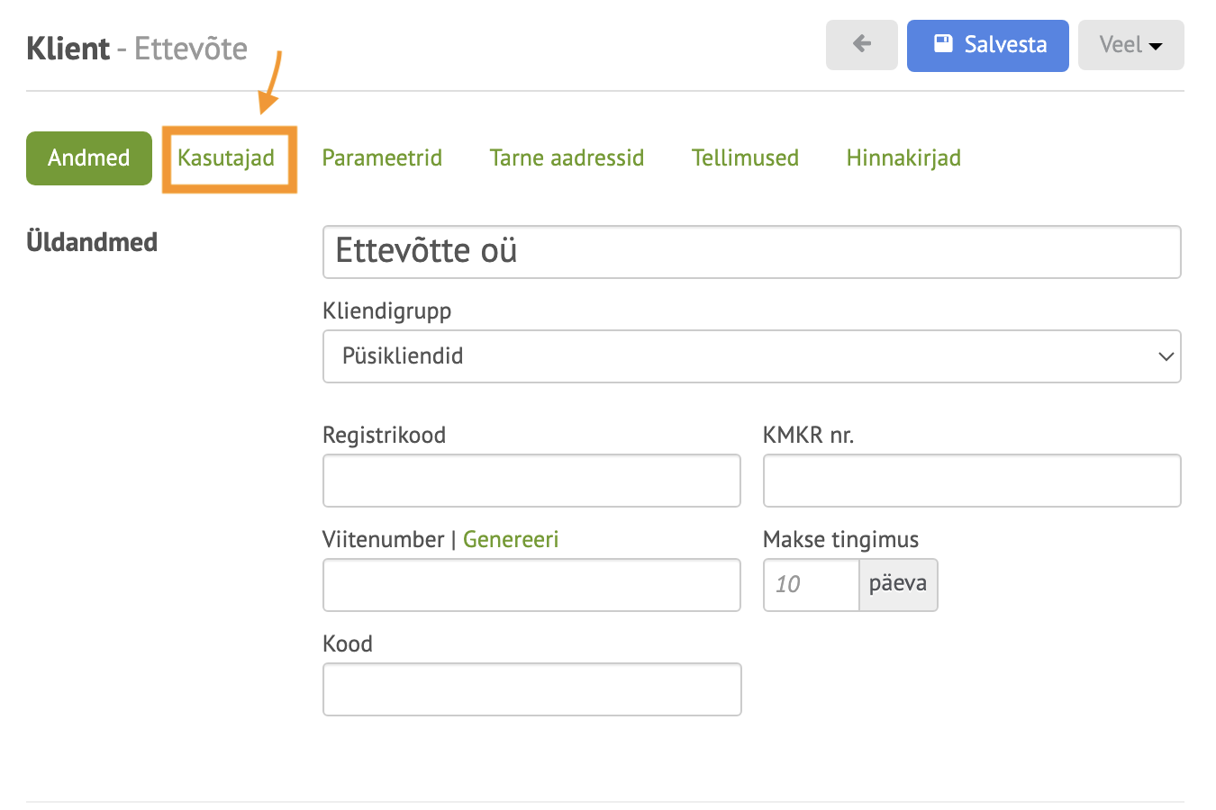 - Vali oma Ettevõtte kaardilt ülevalt menüüst Kasutajad